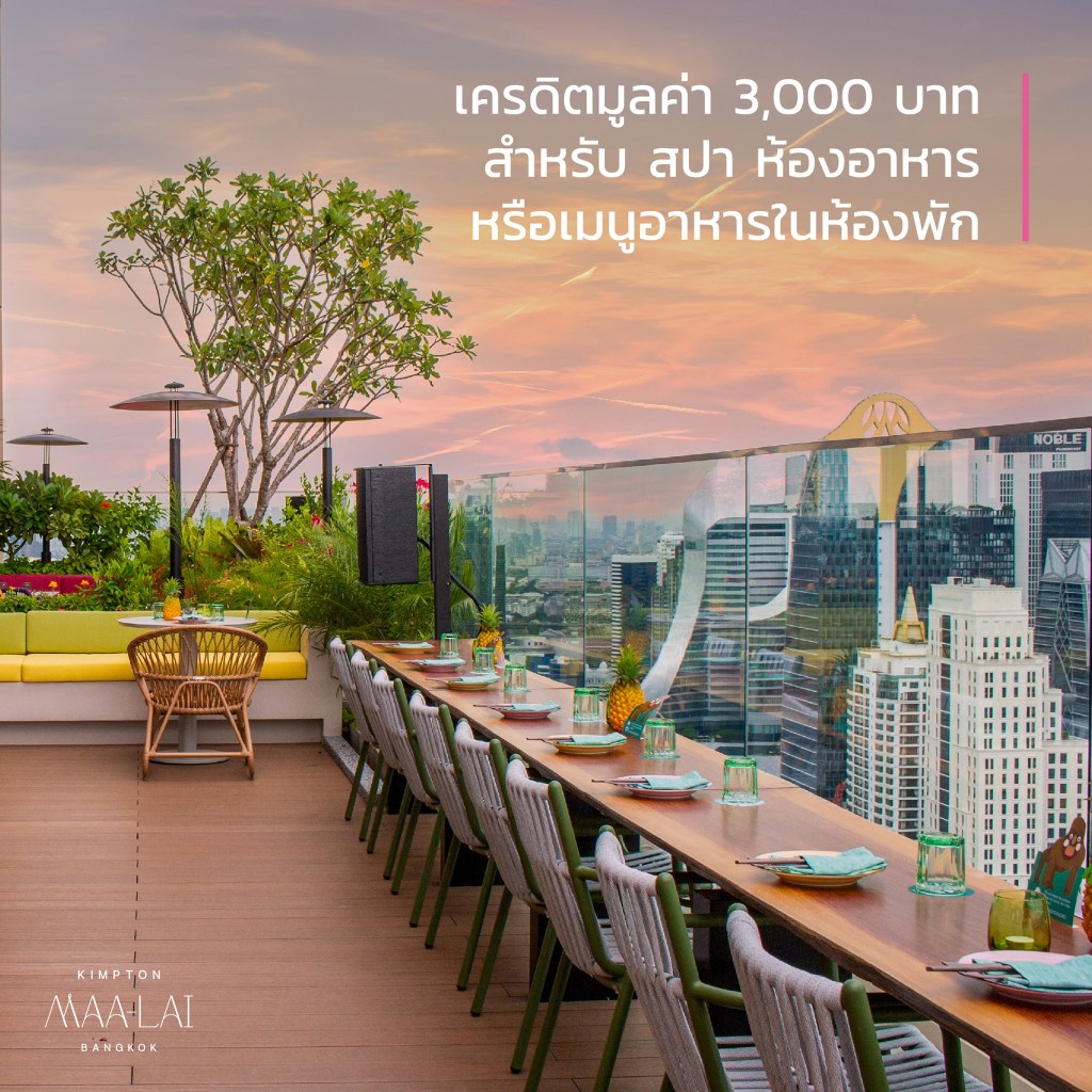 เครดิตมูลค่า 3,000 บาท สำหรับร้านอาหาร สปา และ เมนูอาหารในห้องพัก