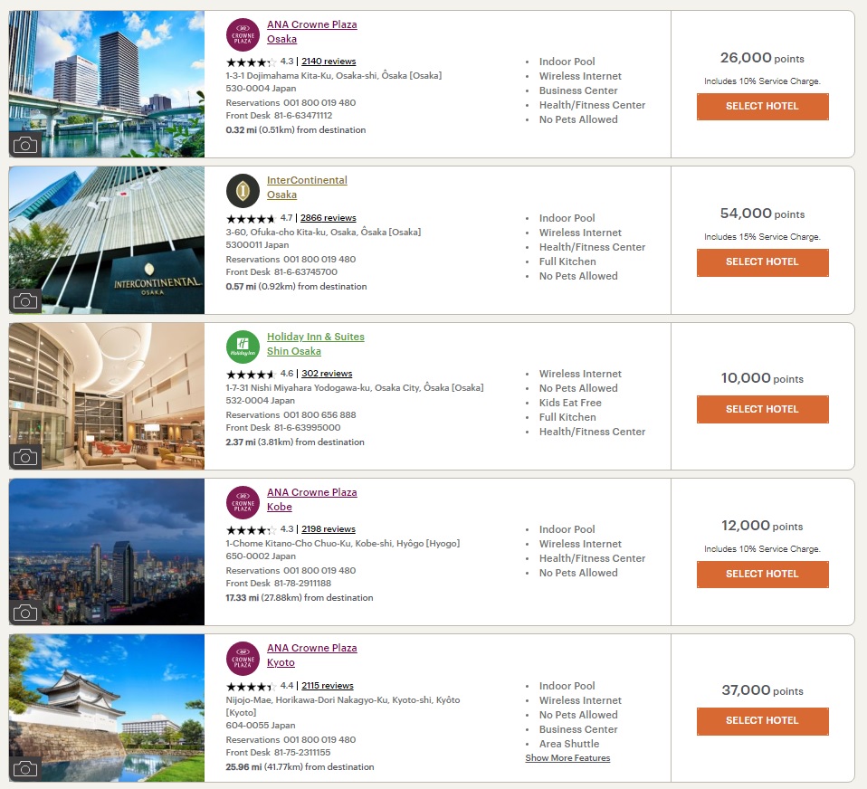 Intercontinental Osaka จาก เยอะมากไป 60000 – 80000 แต้ม กลับมาจุดเดิม 54000 – 55000 แต้ม