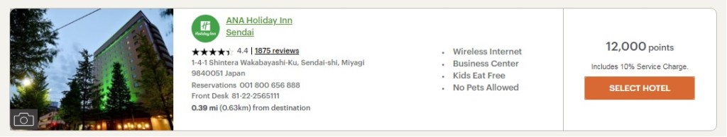 ช่วง เทศกาลหิมะ ซากุระ ที่ Holiday Inn แต้มที่ใช้จะเยอะกว่า นี้นะครับ 2 เท่า
