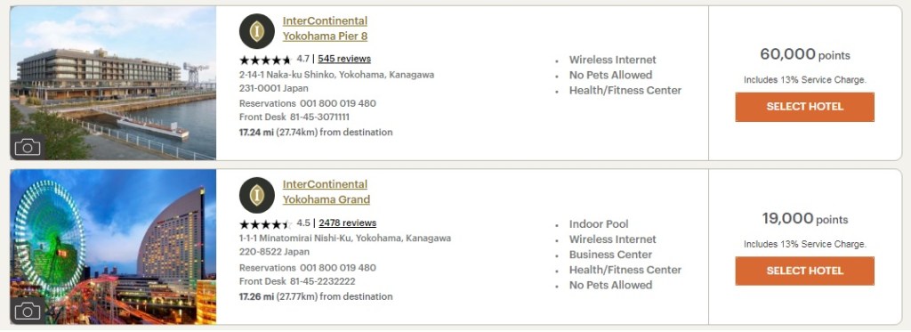 Intercontinental Yokohama Grand จาก 30000 แต้ม เหลือ 19000 – 250000 แต้ม