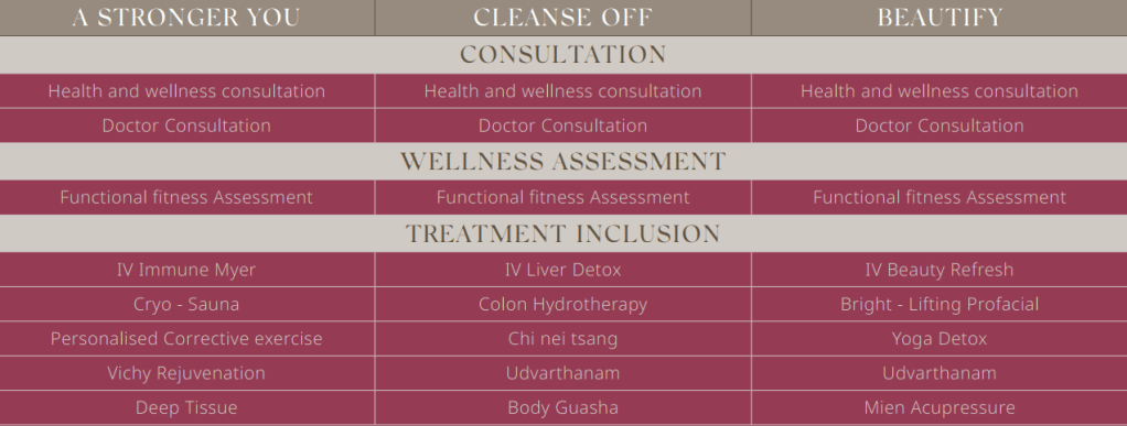 • รับฟรี “การใช้พื้นที่สำหรับธาราบำบัด ได้แก่ สระว่ายน้ำเสริมสุขภาพ ห้องอินฟาเรด ซาวน่า ห้องอบไอน้ำ ห้องอบสมุนไพร และสระแช่ตัว น้ำอุ่น น้ำเย็น”