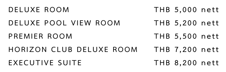 A supplement charge for third person is THB 1600 nett per night inlude breakfast.