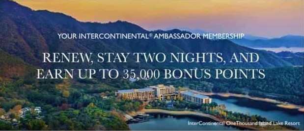 Starting 1 December 2021, InterContinental® Ambassador is offering up to 35,000 bonus points to members who are currently in their renewal window and renew their Ambassador membership, then stay two nights by 30 April 2022 at InterContinental® Hotels & Resorts, Kimpton® Hotels & Restaurants, or Regent® Hotels & Resorts.