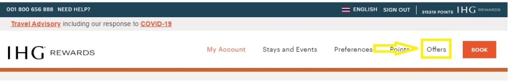 Websites ของ IHG แถบเกี่ยวกับ สมาชิก จะเริ่มจากคลิกที่ขวาบน ทุกครั้งเลยนะครับ