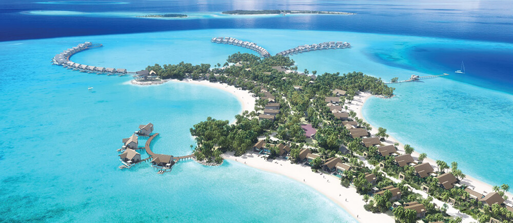 The resort is currently under development on a pristine Indian Ocean site and will stretch across three private islands on Bolidhuffaru Reef in South Male Atoll, accessed by an easy 20-minute speedboat ride from Male’s Velana international airport.