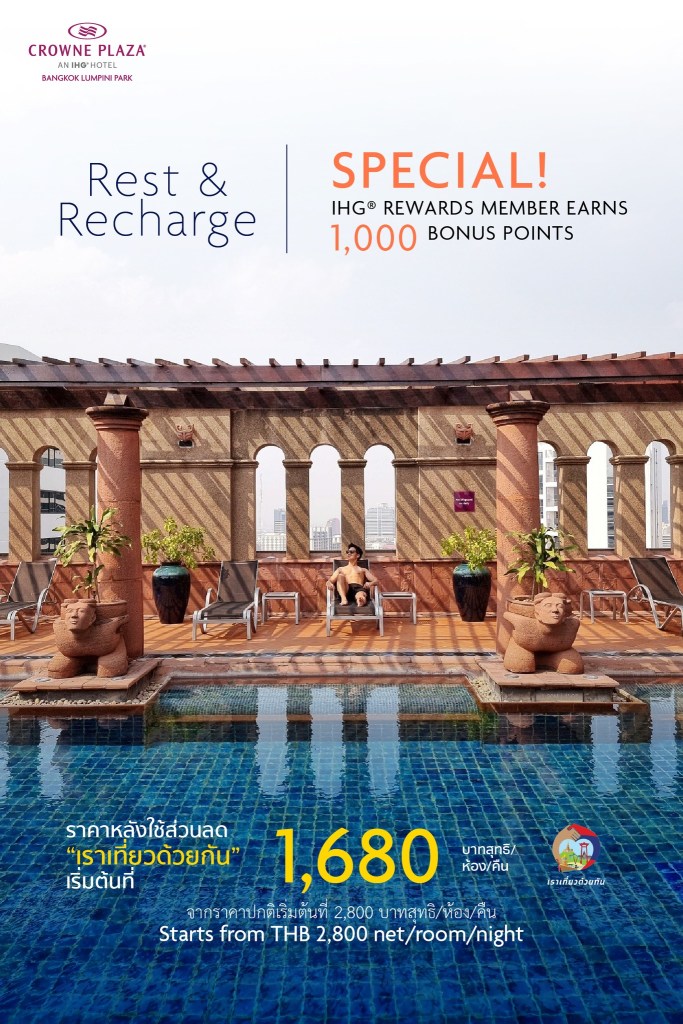 **This promotion applies to the Thai government’s campaign for “Rao Tiew Duay Kan” (We Travel Together). For Rao Tiew Duay Kan reservations, please contact the hotel directly at Email resvn-cpbkk@ihg.com or call 0 2632 9000.