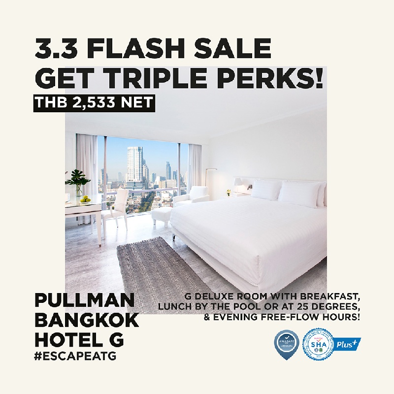 ซื้อ 1 ได้ถึง 3! 🔥 มาคว้าโปรดีโดนใจเพียง 2,533 บาทถ้วนต่อห้องต่อคืน สำหรับ 2 ท่าน เพลิดเพลินกับสเตย์เคชั่นในห้อง จี ดีลักซ์ กับวิวเมืองกรุงเทพฯ 180 องศา และสิทธิประโยชน์อีกถึง 3 อย่าง! ได้แก่