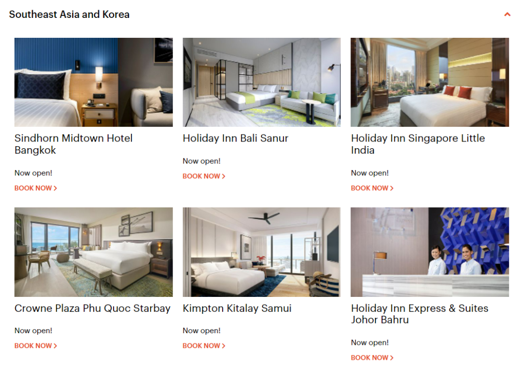 South East Asia and South Korea New Hotels 2X IHG® Rewards Points Offer: