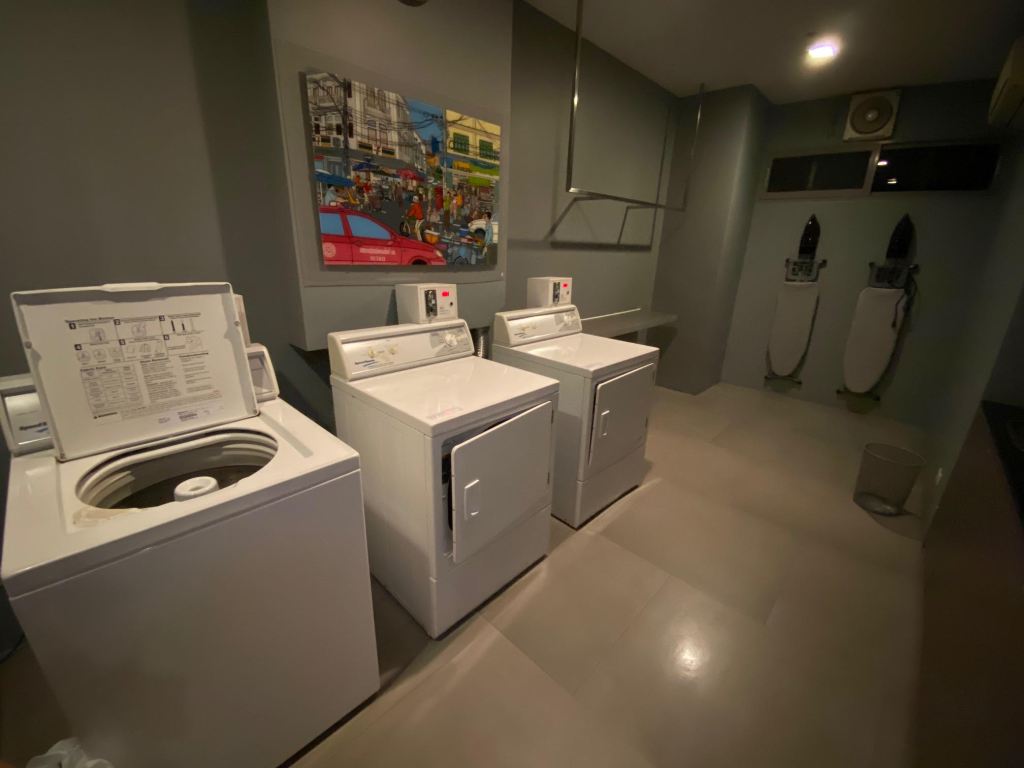 ที่นี้มี ห้องซักผัก หยอดเหรียญให้บริการ และ มีเตารีด ในห้องนี้เลย