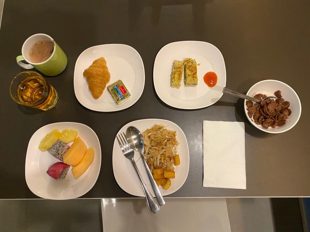 วันที่ผมไป จะมีผัดไทยไก่ ไข่เจียวแบบไทย ข้าว ครัวซองก็อร่อยดีครับ