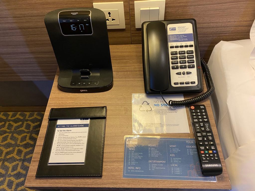 มีโทรศัพท์ นาฬิกาปลุกที่หัวเตียงครับ