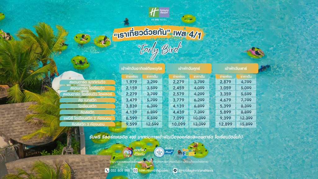 ฮอลิเดย์ อินน์ วานา นาวา หัวหิน ให้มากกว่าด้วยโปรโมชั่นพิเศษก่อน กับ 𝐄𝐚𝐫𝐥𝐲 𝐁𝐢𝐫𝐝 เราเที่ยวด้วยกันเฟส 𝟒/𝟏