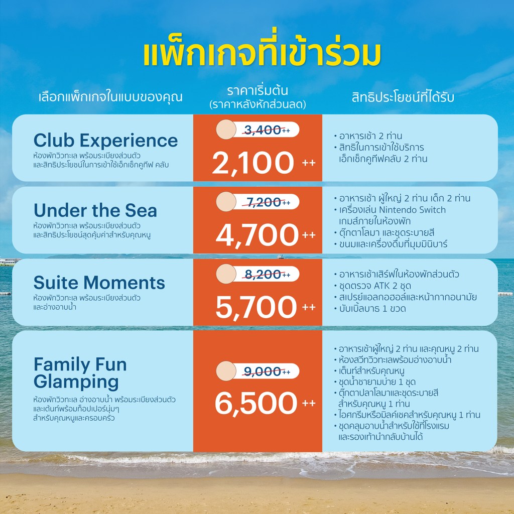 🔥 แพ็กเกจห้องพักพร้อมสิทธิประโยชน์ ราคาหลังหักส่วนลดเริ่มต้นเพียง 2,100++ บาท