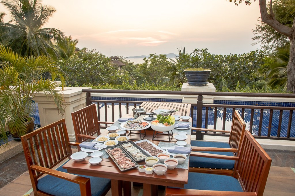 เซ็ตหมูกระทะชุดหมูคุโรบุตะชนิดพิเศษ สำหรับ 2 ท่านที่ห้องอาหารอิลิเม้นท์หรือพาวิลเลียนในห้องพักประเภทจูเนียร์ สวีท (บริการด้วยเตาไฟฟ้า โดยชุดหมูคุโรบุตะชนิดพิเศษประกอบด้วย เบค่อน ชุดผักรวม ไข่ วุ้นเส้น เส้นอูด้ง ข้าวผัดกระเทียม เสิร์ฟพร้อมน้ำจิ้มรสเด็ด 5 ชนิด)