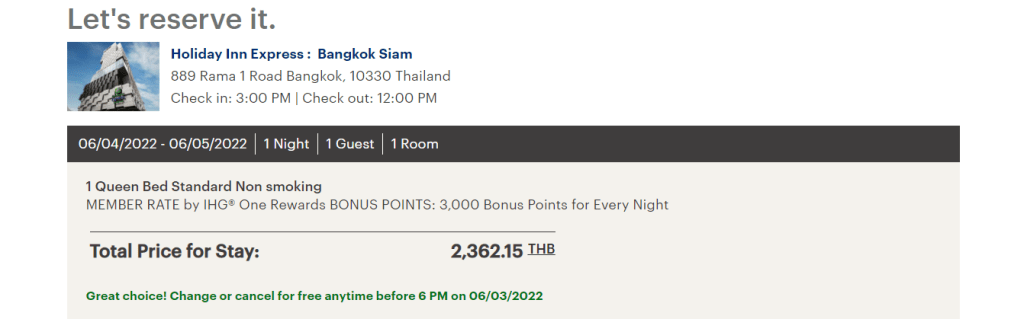 ที่นี้ +2000 แต้ม อยู่ 1714 บาทสุทธิ แต้ม IHG ประมาณ 0.2 บาทนะครับ