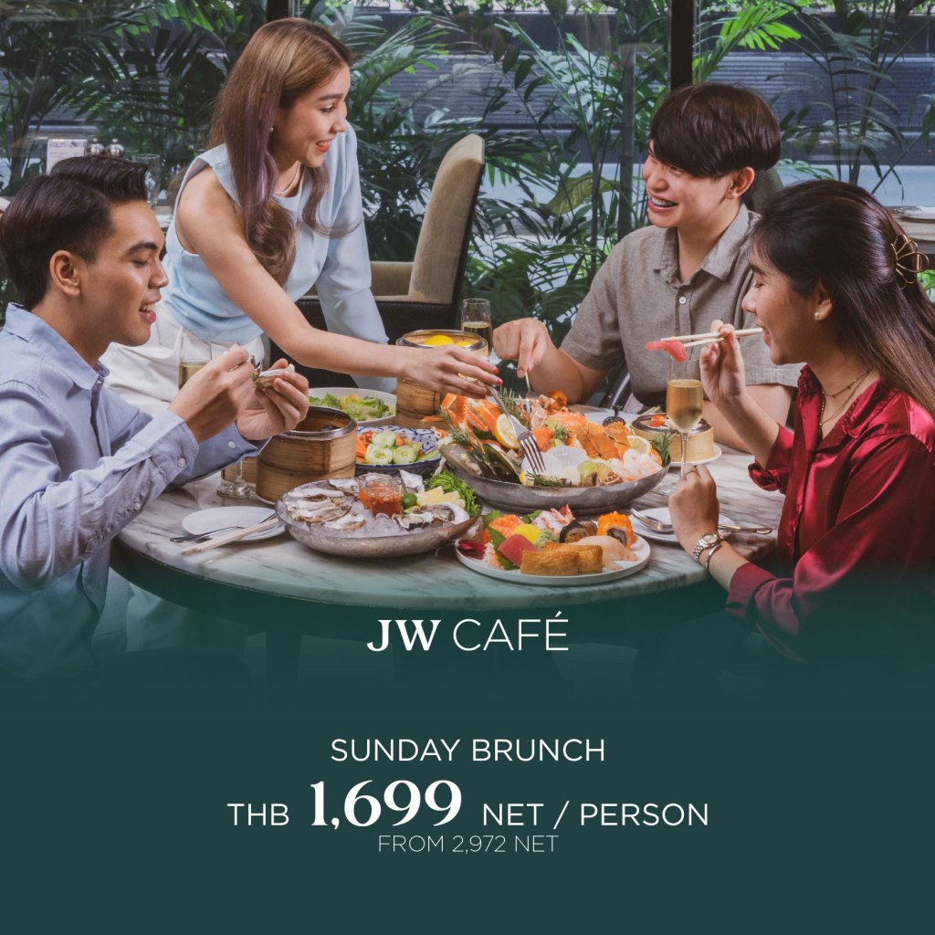 บุฟเฟ่ต์อาหารนานาชาติมื้อสาย ซันเดย์บรั้นช์ (วันอาทิตย์) ราคา 1,699 บาทสุทธิ ต่อท่าน (จากราคาปกติ ราคา 2,972 บาทสุทธิ ต่อท่าน)