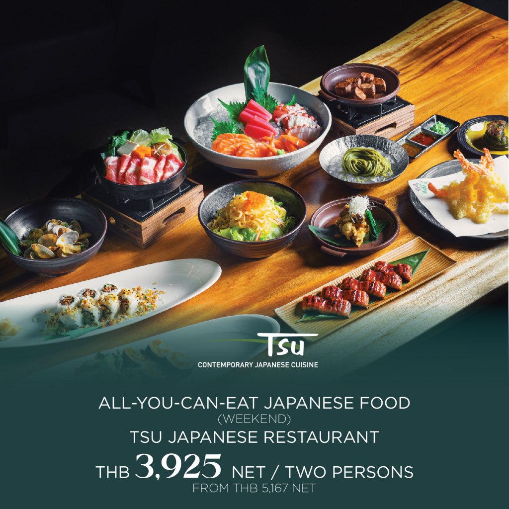 บุฟเฟ่ต์อาหารญี่ปุ่นมื้อกลางวัน วันเสาร์ – อาทิตย์ ราคา 3,925 บาทสุทธิ สำหรับ 2 ท่าน (จากราคาปกติ 5,167 บาทสุทธิ สำหรับ 2 ท่าน)