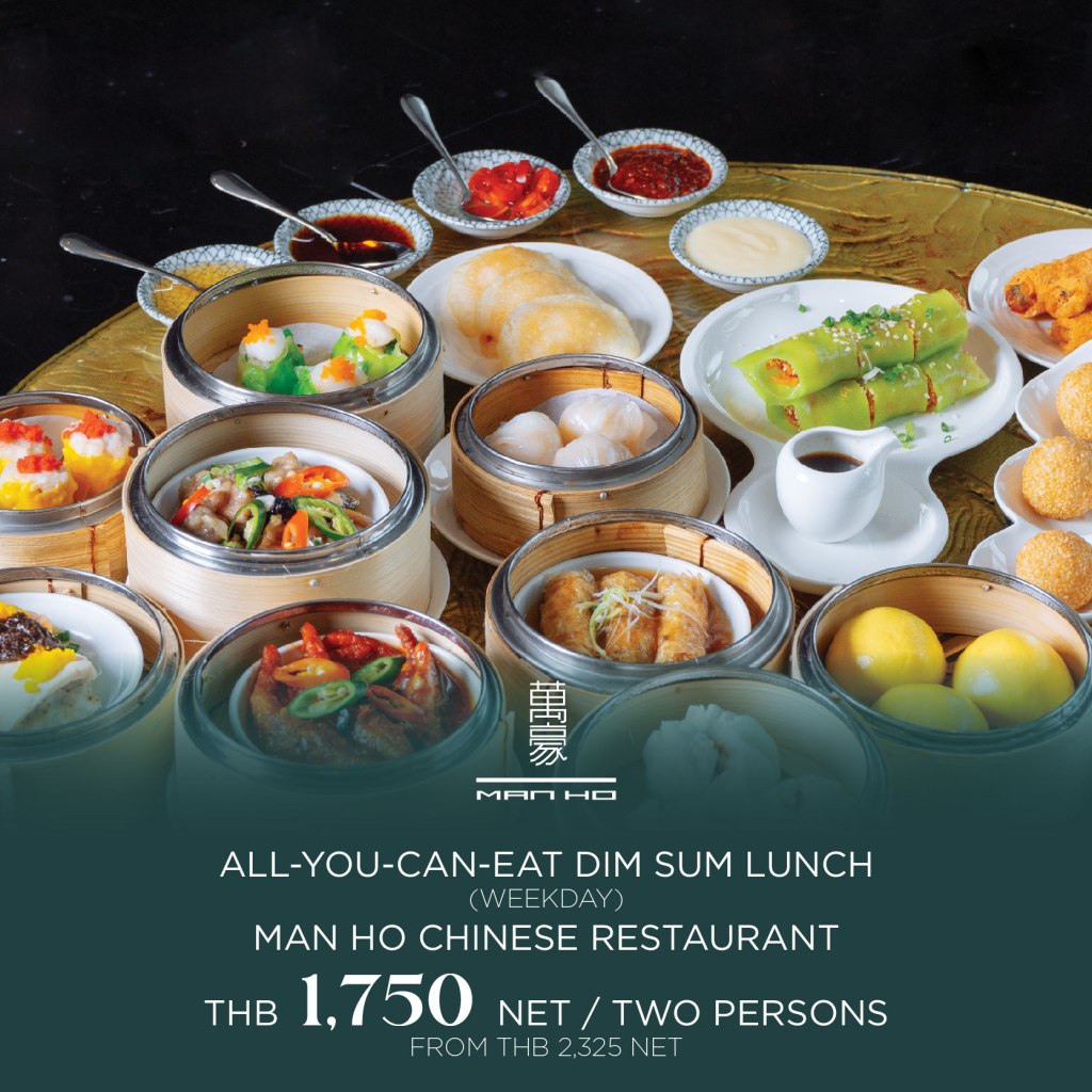 บุฟเฟ่ต์ติ่มซำมื้อกลางวัน วันจันทร์ – ศุกร์ ราคา 1,750 บาทสุทธิ สำหรับ 2 ท่าน (จากราคาปกติ 2,325 บาทสุทธิ สำหรับ 2 ท่าน)