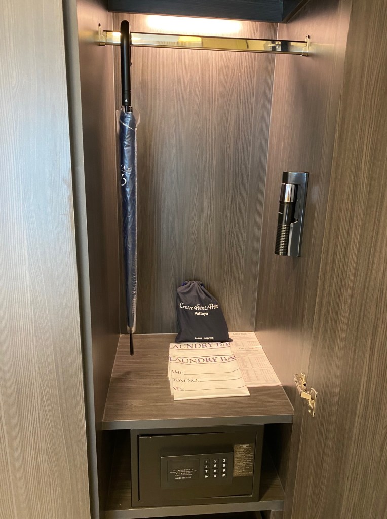 ตู้เสื้อผ้าขนาดใหญ่นะครับ มีร่ม ตู้เซฟ ไดร์เป่าผม ผ้าคลุมอาบน้ำ