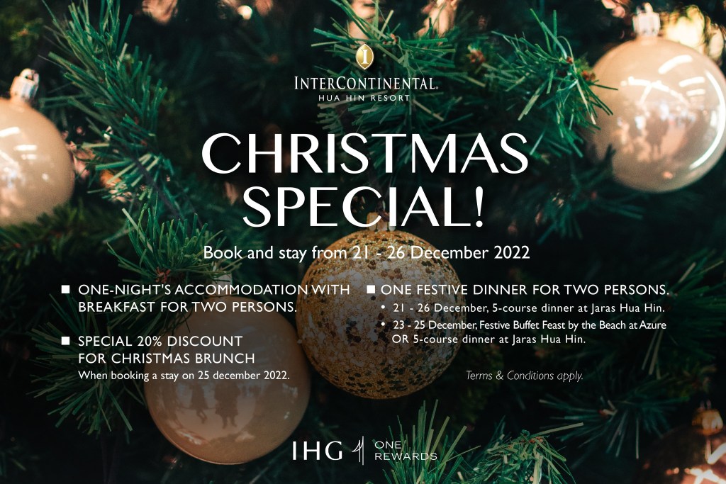 ส่งท้ายปีเก่าต้อนรับปีใหม่ด้วยความสุขและความอร่อย แพคเกจห้องพักพร้อมอาหารเช้าและตัวเลือกดินเนอร์แสนอร่อยในวันคริสต์มาสที่อินเตอร์คอนติเนนตัล หัวหิน รีสอร์ท