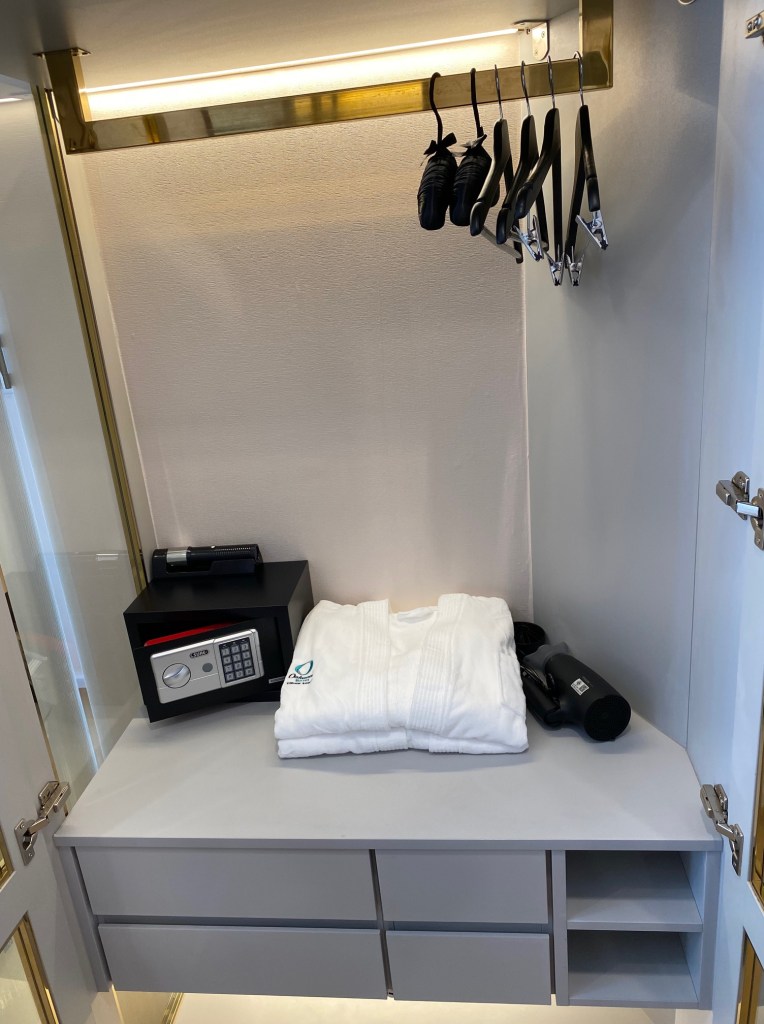 ตู้เสื้อผ้า ก็จะมีผ้าคลุมอาบน้ำ ร่ม ตู้เซฟ สลีปเปอร์ จะอยู่ในตู้ใส่รองเท้า