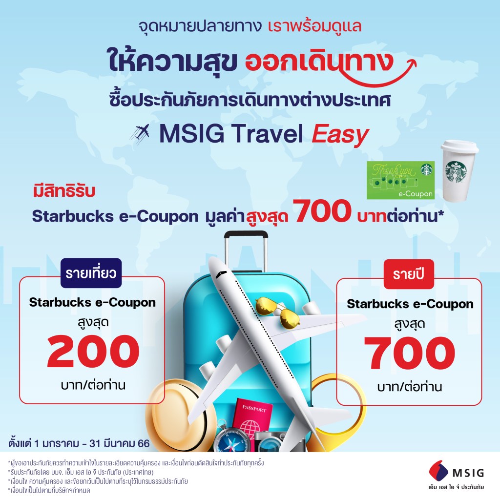 ตอนนี้มี โปรโมชั่น ประจำ อย่าง ประกันเดินทางรายเที่ยว ได้คูปอง Starbucks สูงสุด 200 บาทด้วยนะครับ