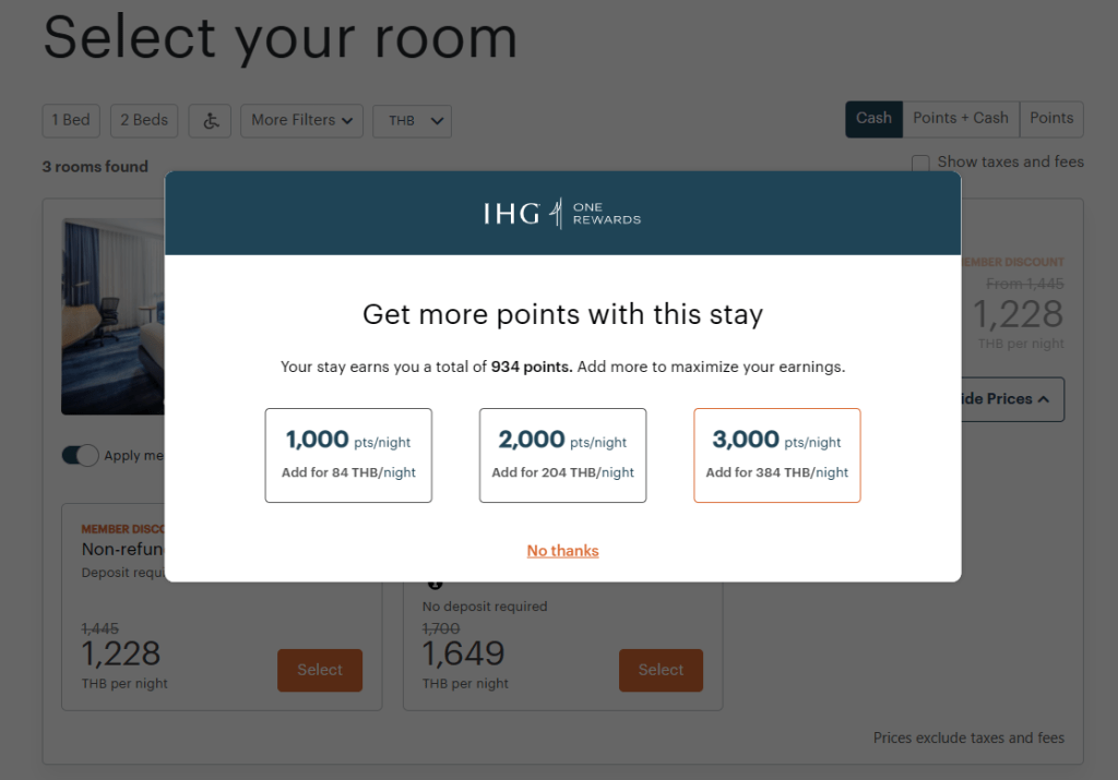เราจะสามารถซื้อแต้มเพิ่ม ได้ต่อคืน นะครับ ซึ่งจำนวนแต้ม แล้วแต่โรงแรม มี 1000 – 5000 แต้ม
