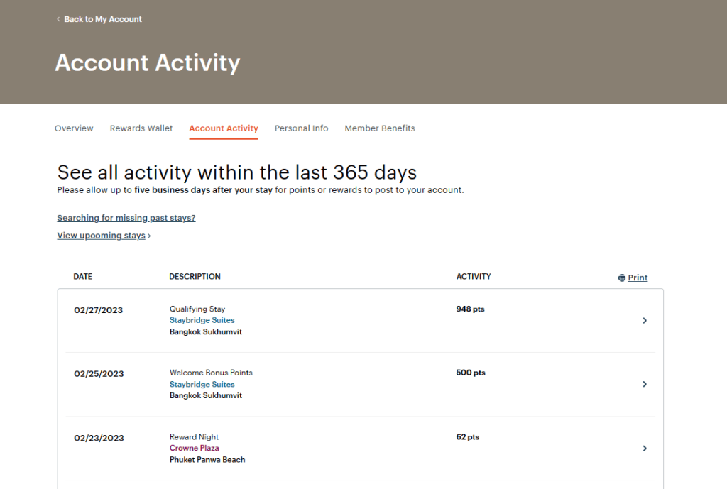 ส่วนการเข้าพัก IHG จะเน้น เก็บแต้มเป็นหลักเลย นอกจาก แต้มจากโปรโมชั่นแล้ว