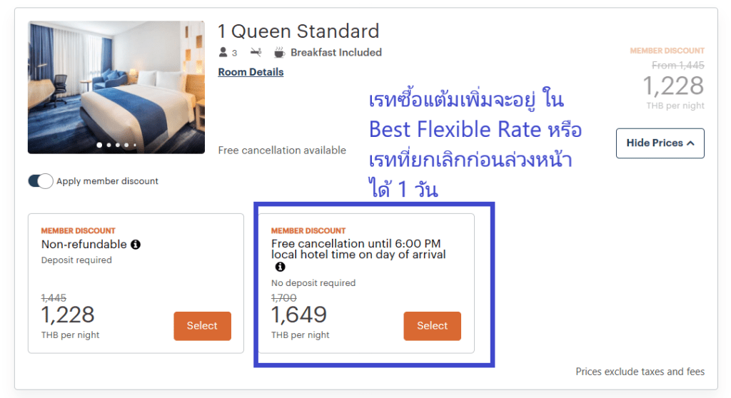 เรทซื้อแต้มของ IHG คือ เมื่อเราจองเรท Best Flexible ซึ่งเป็น เรทที่สามารถยกเลิกได้ ล่วงหน้า 1 วัน