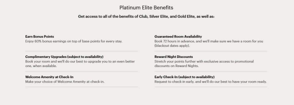 อย่าง IHG One Rewards ระดับกลาง ที่เก็บง่ายๆ อย่าง Platinum สิทธิประโยชน์ ที่ได้