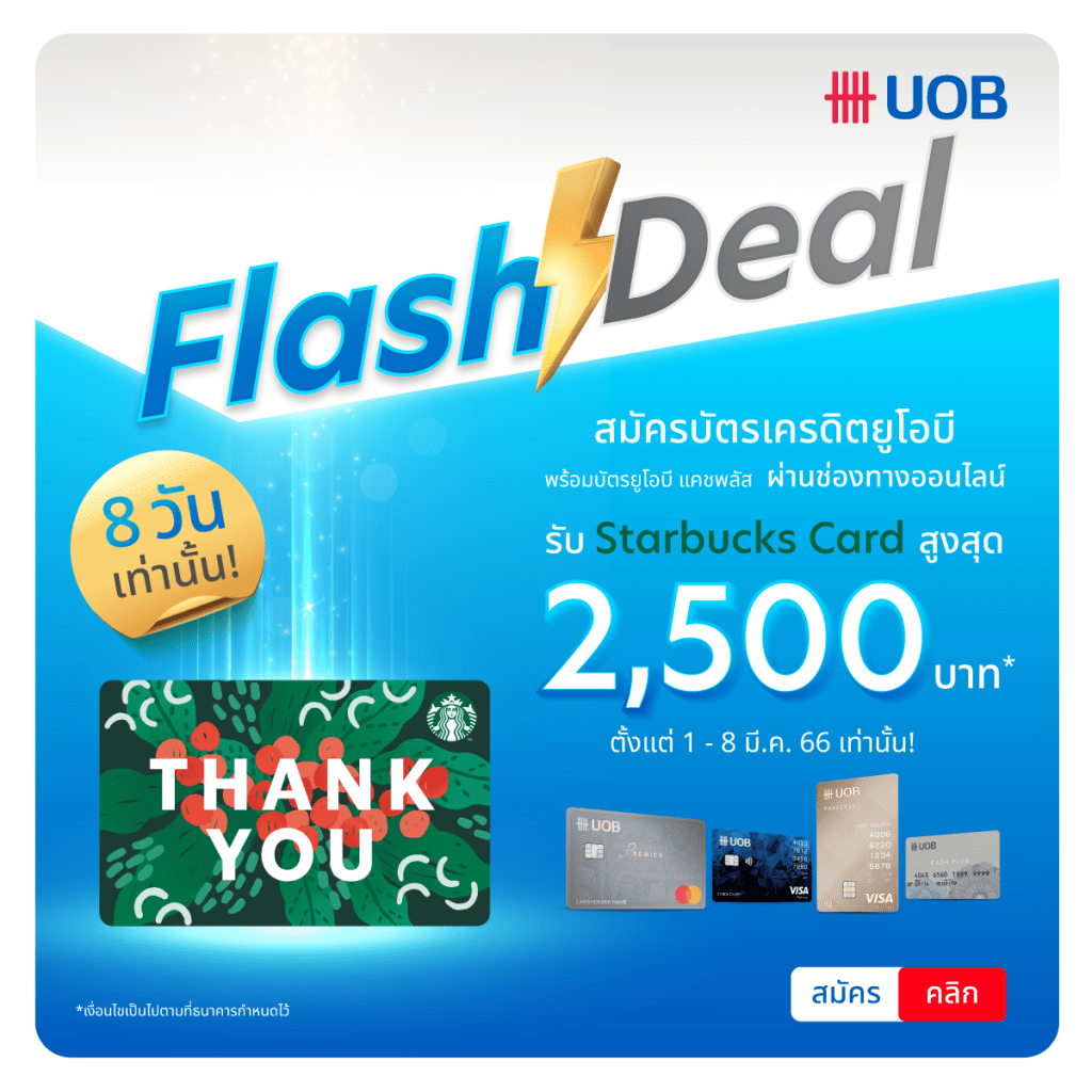 โปรโมชั่น Flash Deal สำหรับผู้สมัครบัตรเครดิตยูโอบี นะครับ