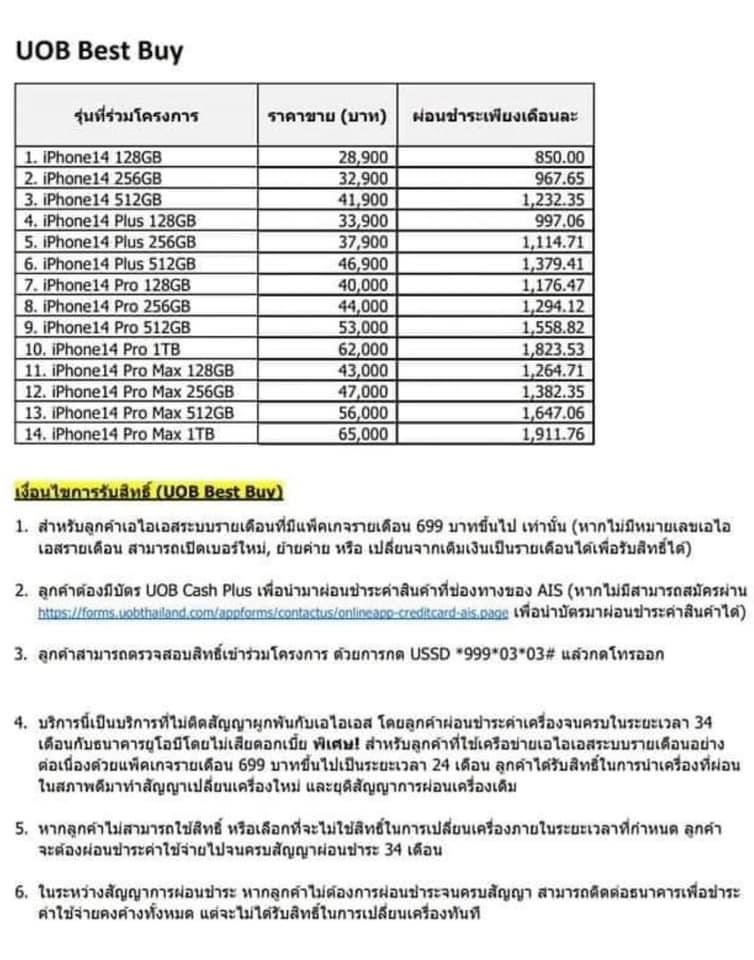 ข้อมูลของ AIS x UOB ออกมาแล้วนะครับ