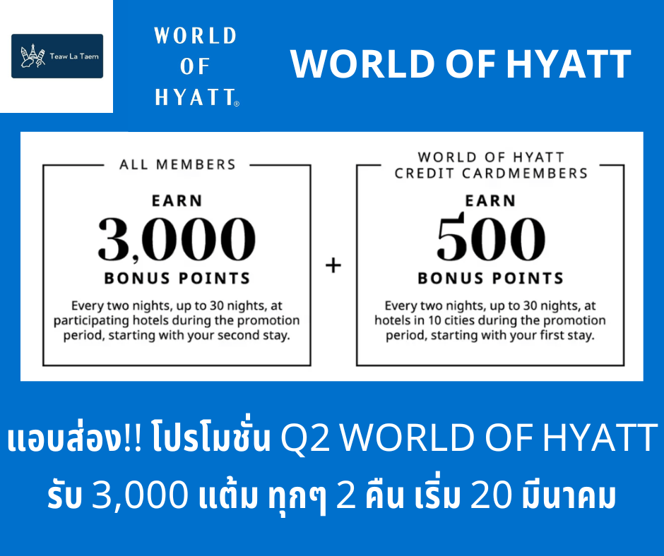 โบนัสพิเศษรอบนี้ คือ 500 แต้ม สำหรับ ผู้ถือบัตรเครดิตการ์ด cobranded ของ Hyatt นะครับ