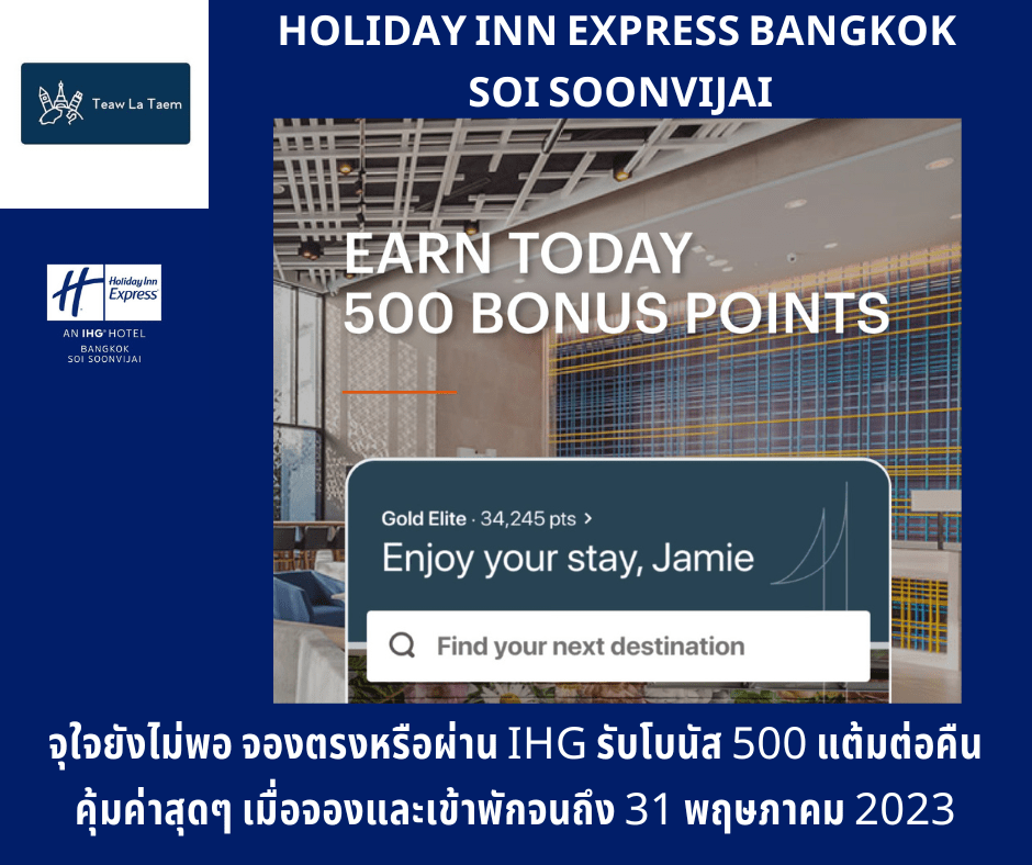 Don’t miss out on this incredible opportunity! Enjoy an exclusive offer just for you at Holiday Inn Express Bangkok Soi Soonvijai. Book your room directly with us or through the IHG Brand Website to receive 𝟱𝟬𝟬 𝗕𝗼𝗻𝘂𝘀 𝗣𝗼𝗶𝗻𝘁𝘀 per night ![]()