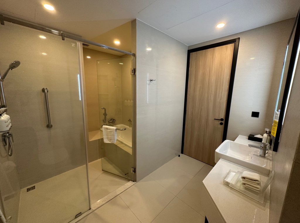 ห้องน้ำมีอ่างอาบน้ำ ห้องน้ำใหญ่มาก แยกโซนแห้ง โซนเปียกได้เป็นอย่างดี