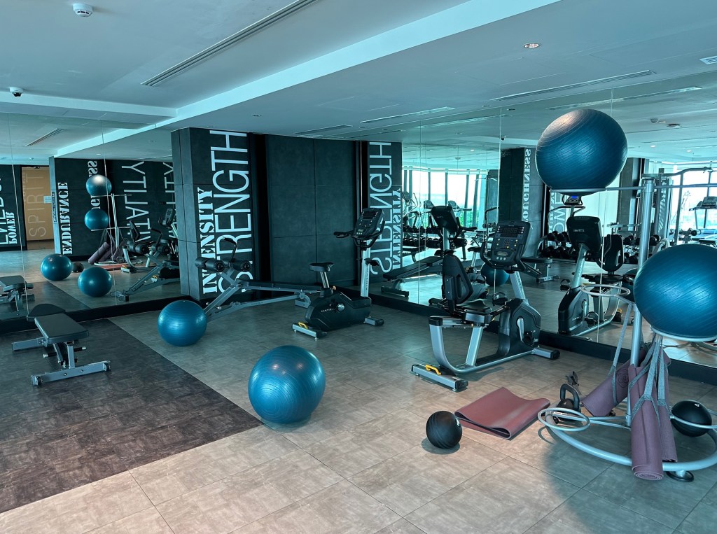 ฟิตเนสอยู่ชั้น 9 เดินขึ้นจากทางขวามือ ขนาดใหญ่ เลยนะครับ อุปกรณ์ครบครัน