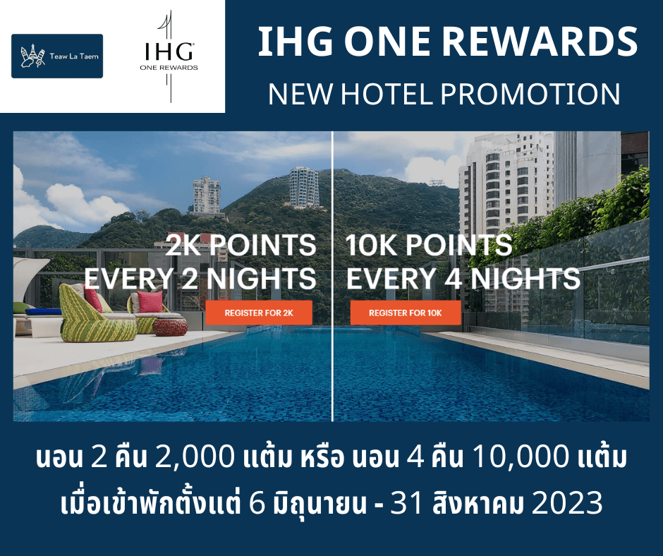IHG One Rewards : 2K Every 2 Nights Or 10K Every 4 Nights Stay 6 Jun – 31 Aug 2023