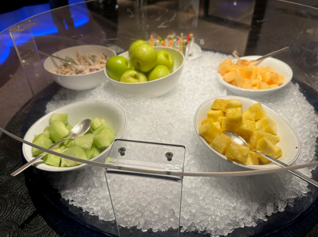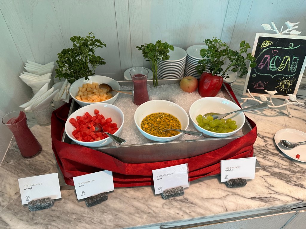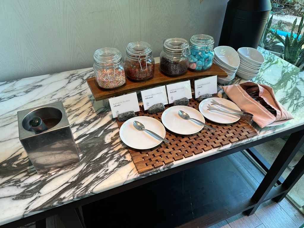 มีผลไม้ ถั่วต่างๆ มาร์ชเมลโล่ ให้ทานเล่น นะครับ