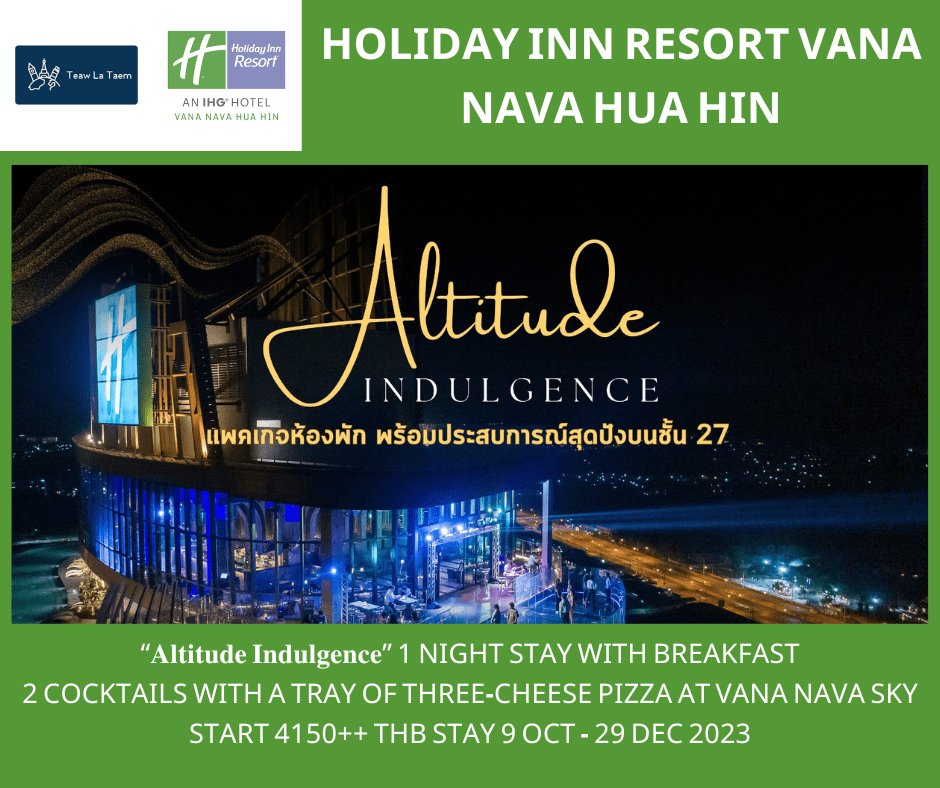 Discover Hua Hin from a whole new perspective with our latest offer at Holiday Inn Vana Nava Hua Hin. Elevate your vacation experience and savor a delectable menu with the most stunning views in town! at Vana Nava Sky ![]()
