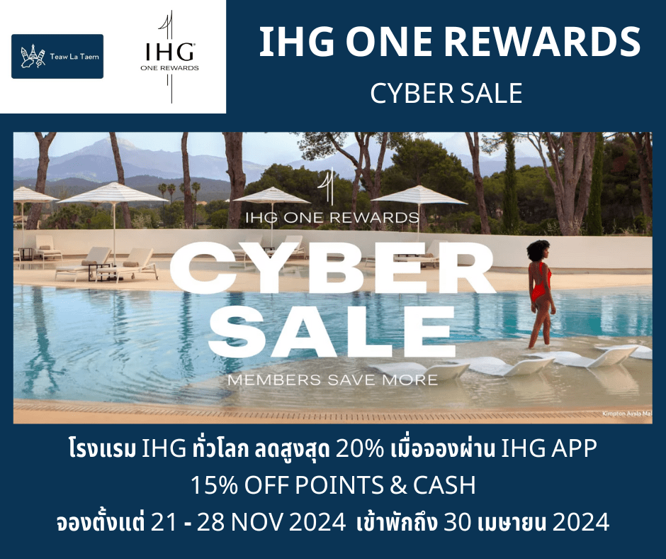 The IHG Hotels & Resorts Cyber Sale promotional rate is valid only for bookings made from November 20 to November 28, 2023 in the US, Canada and Mexico, Latin America and Caribbean and November 21 – 28, 2023 across other regions (“Booking Dates”). For stays at participating IHG hotels between November 23, 2023 – April 30, 2024 in the United States, Canada, Mexico, Latin America, the Caribbean, East Asia, South Asia, Southeast Asia, Australia, and New Zealand. For stays at participating IHG hotels between November 24, 2023 – March 31, 2024 across Europe and Greater China. For stays at participating IHG hotels between November 24, 2023 – August 31, 2024 across India, Middle East and Africa.