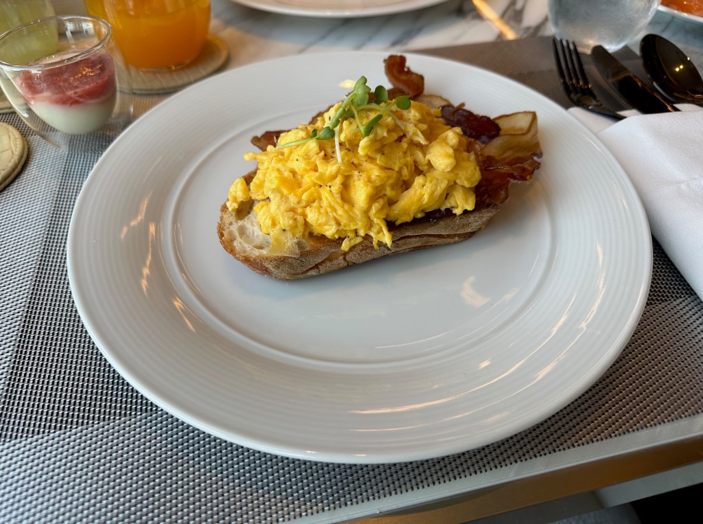 The Ruhrei (German-style scrambled eggs) with bacon was also delicious.