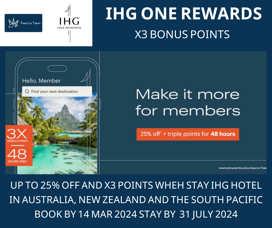 ได้รับโบนัสแต้ม X3 เท่า สำหรับสมาชิก IHG นะครับ