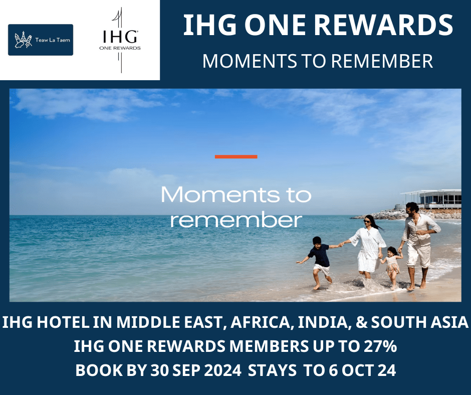 • IHG One Rewards members also receive 25% to 30% discount on dining as part of IHG Dining Deals at participating outlets when showing proof of their membership via the IHG App.