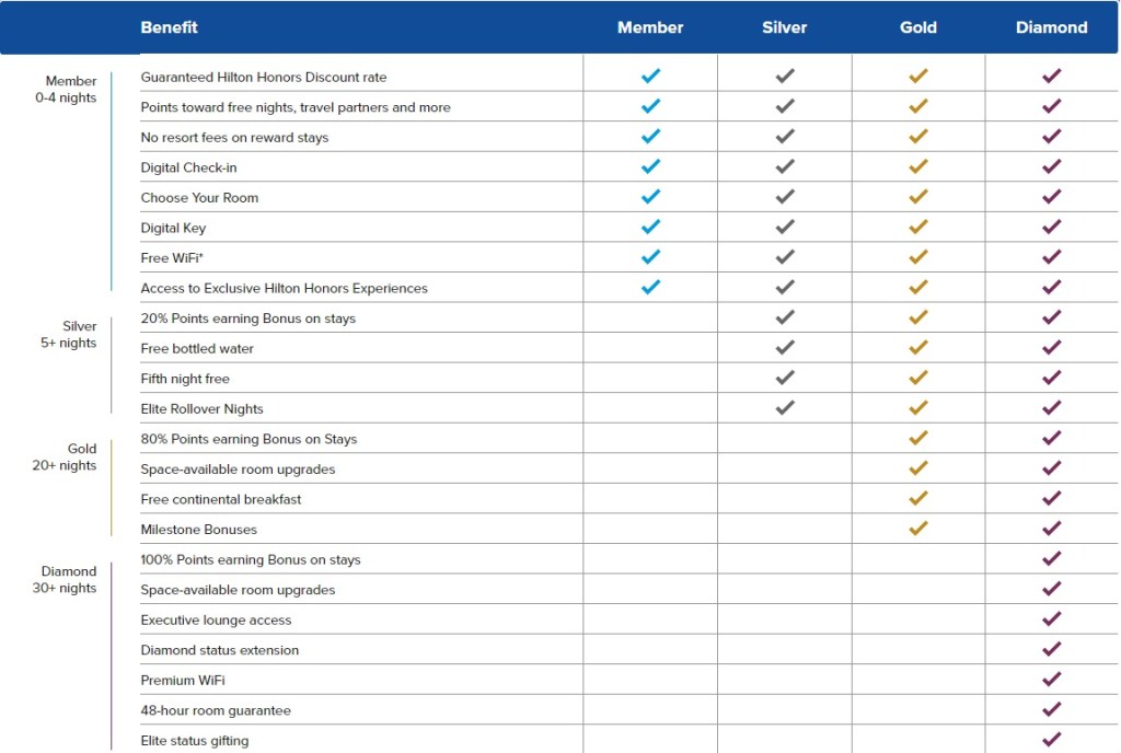 Hilton Honors Gold & Diamond Status Match