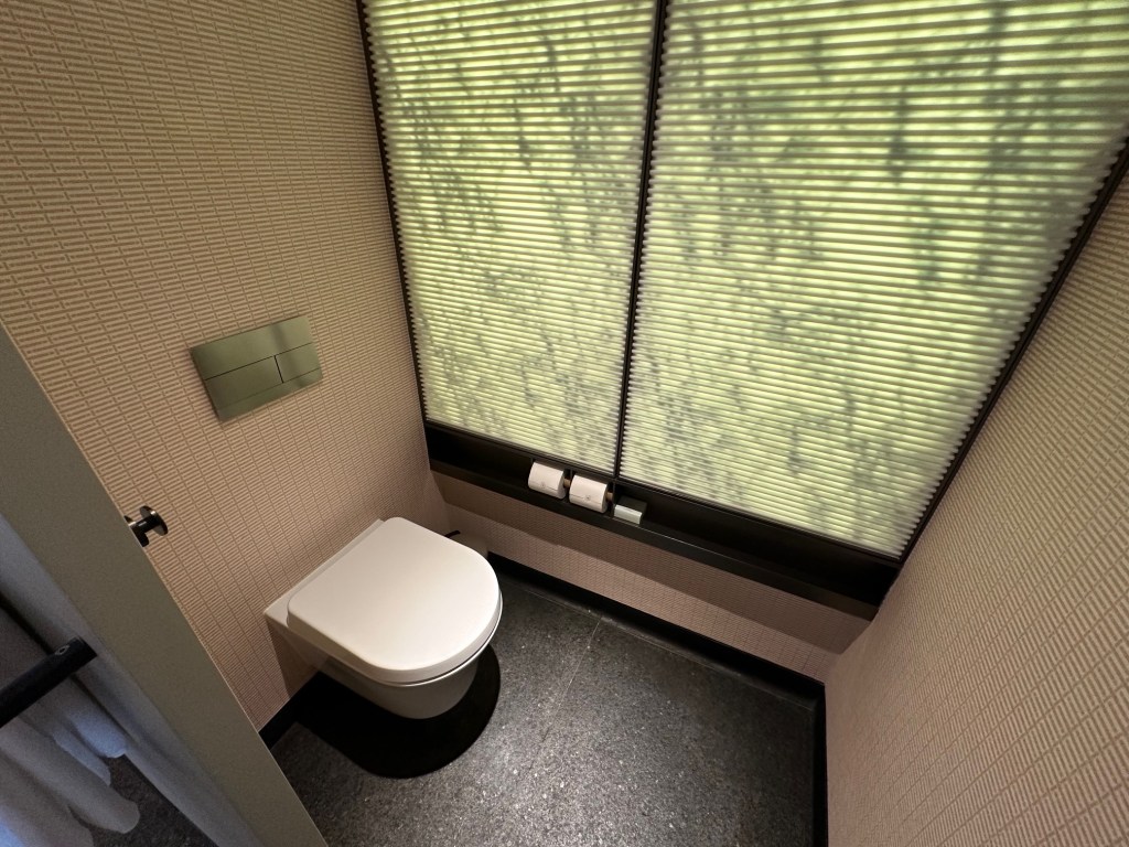 The layout of this room is a bit strange. Walking in, we will see the bathroom area first.