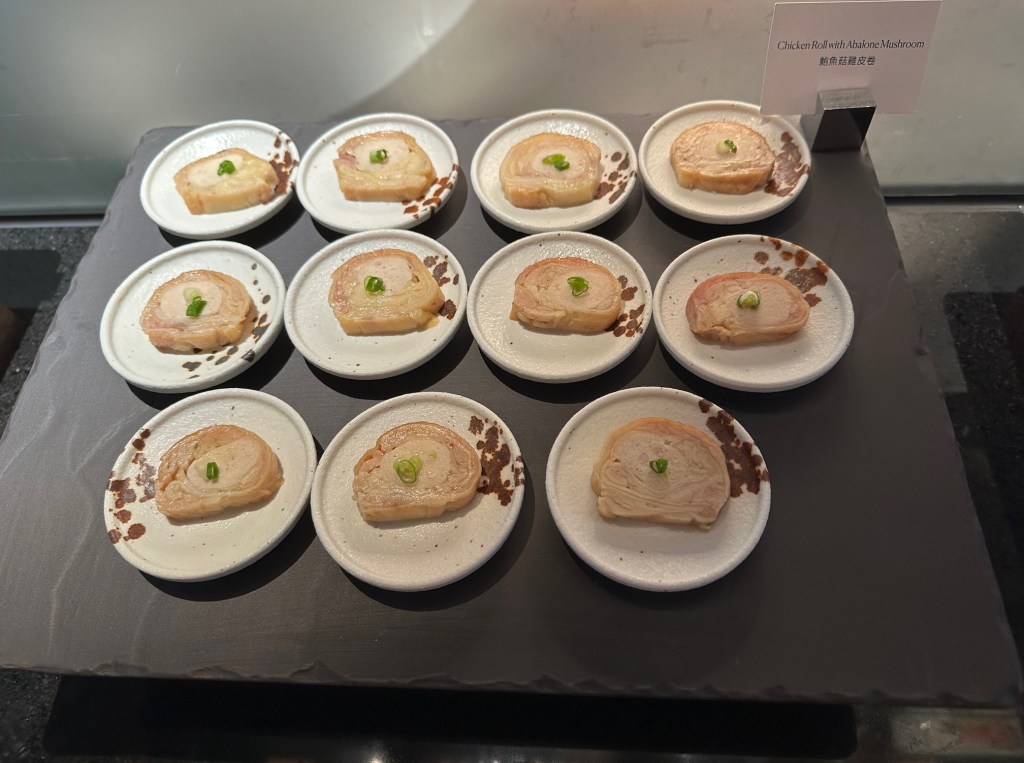 Chicken Roll with Abalon Mushroom: A unique and intriguing combination of chicken roll and abalone mushroom, chilled to perfection.
