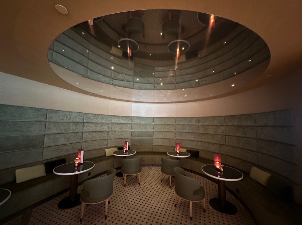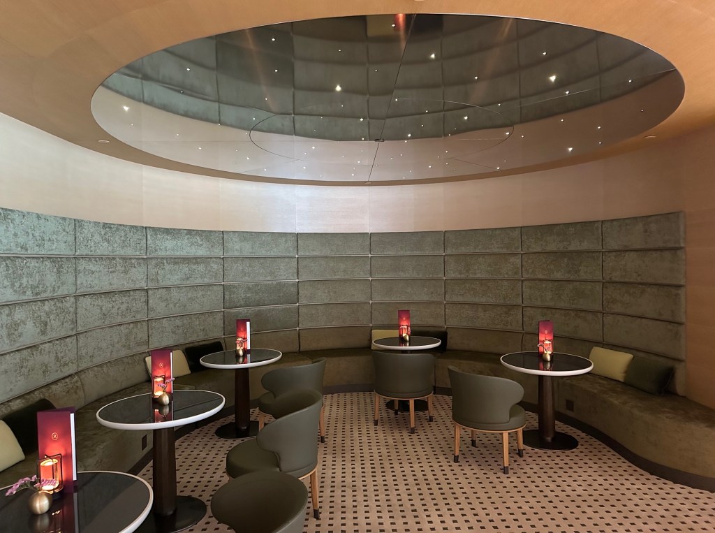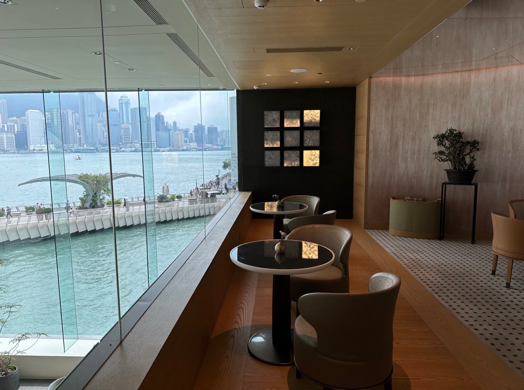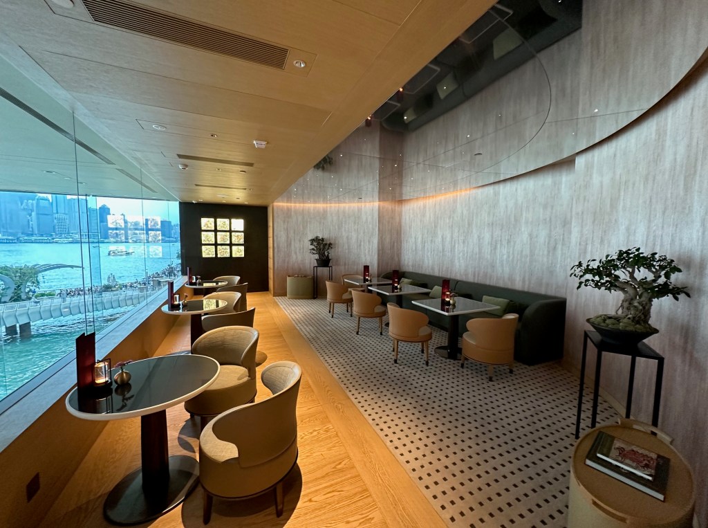 The Regent Club, situated on the hotel’s second floor, offers breathtaking panoramic views of Victoria Harbour, creating an atmosphere of elegance and privacy. The expansive space features ample seating options, including private nooks, making it an ideal retreat for relaxation and indulgence.