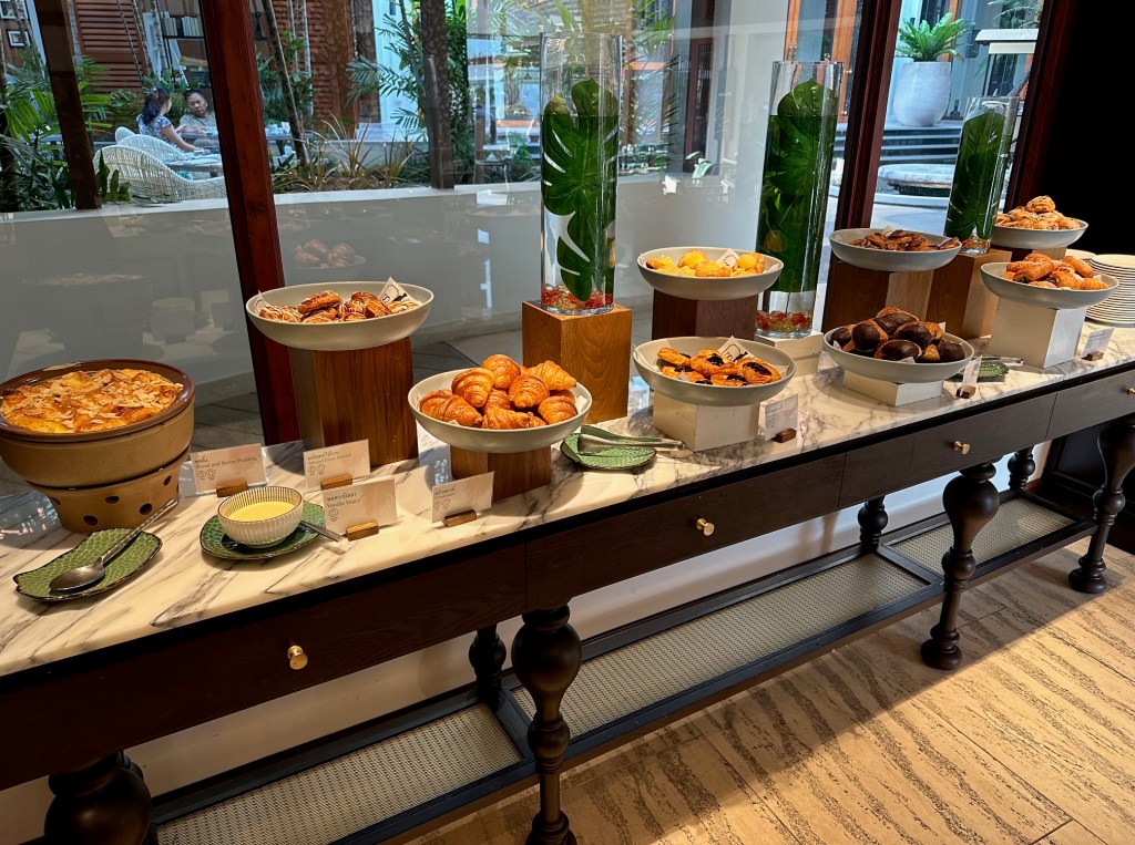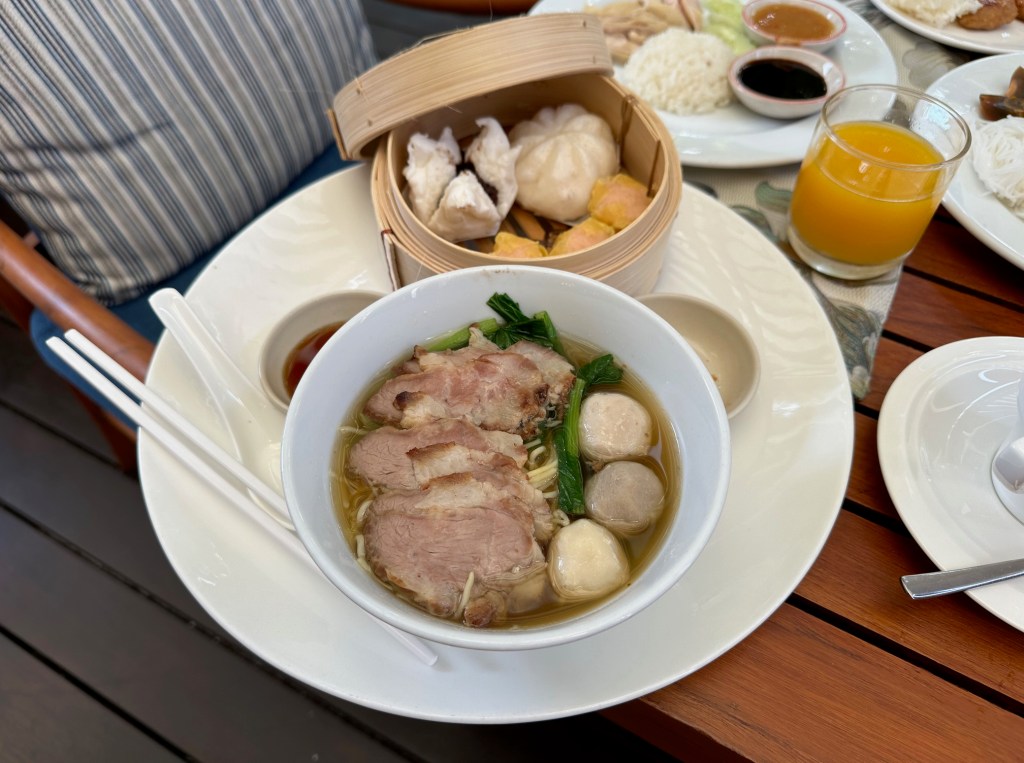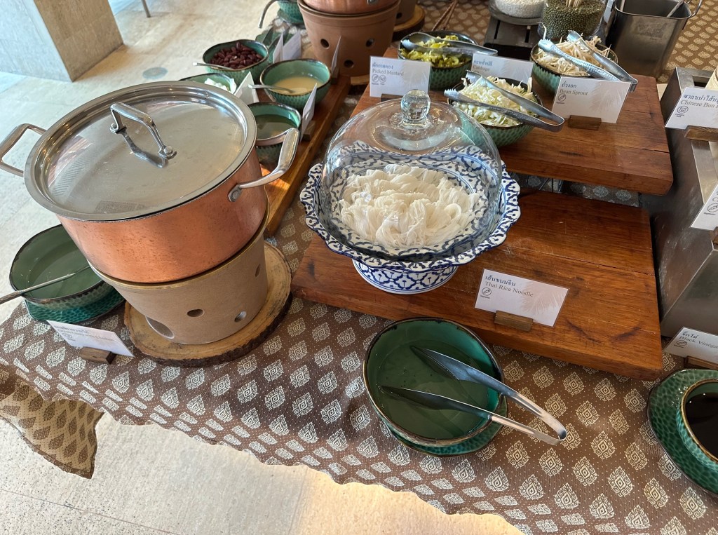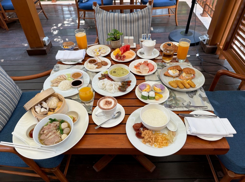 The breakfast buffet here has a wide variety of delicious dishes, and many people love the chicken rice, green curry with rice noodles, and grilled pork.