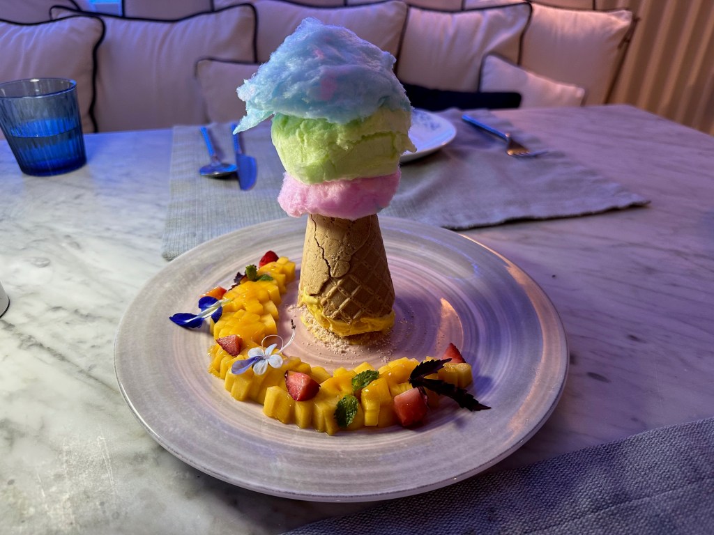 The mango ice cream and fresh mango were the perfect ending to our meal. The sweetness of both was delightful, and they paired together beautifully. The presentation was so visually appealing, it was almost too pretty to eat.