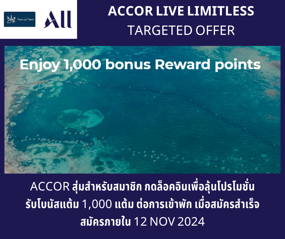 3. This offer entitles members of ALL – Accor Live Limitless to earn 1,000 Reward points when registering to the offer.